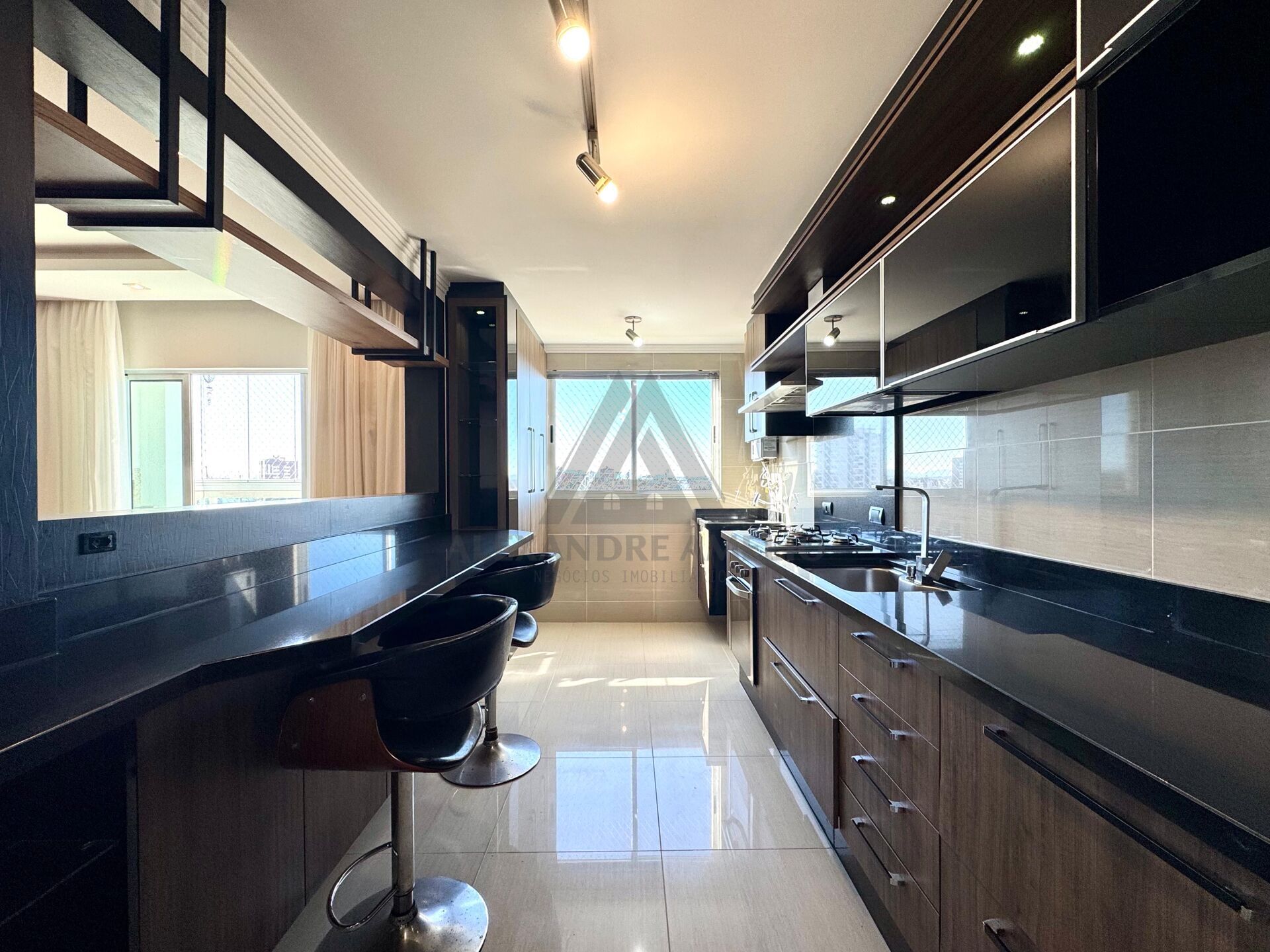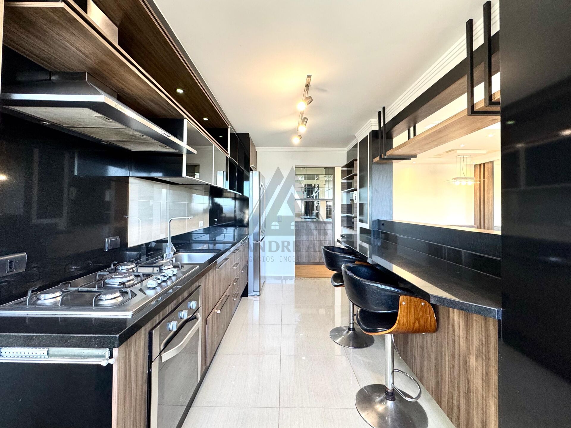 Cozinha com móveis planejados e eletros;